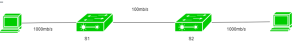 Here is a topology in which two switches are connected with one PC each. The link between the switches and PC is 1000mb/s and the link between the switches is 100mb/s.